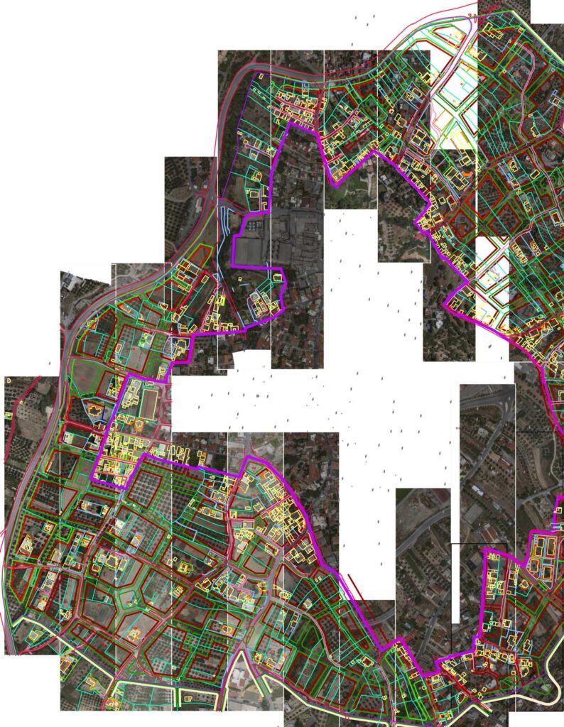 Επειδή ο οικισμός είχε πολλές λεπτομέρειες, που δεν φαίνονται στον ορθοφωτοχάρτη, επιλέχθηκε να γίνουν αποτυπώσεις με handheld mobile laser scanner κατά μήκος κάποιων οδών. Στην συνέχεια έγινε fusing των pointclouds που παρήχθησαν από το scanning και την φωτογραμμετρία και στοιχεία από το pointcloud χρησιμοποιήθηκαν στον τελικό σχεδιασμό. Εδώ φαίνεται το τμήμα του οικισμού με την πρόταση τροποποίησης του πολεοδομικού σχεδίου, που βασίστηκε στην αποτύπωση.