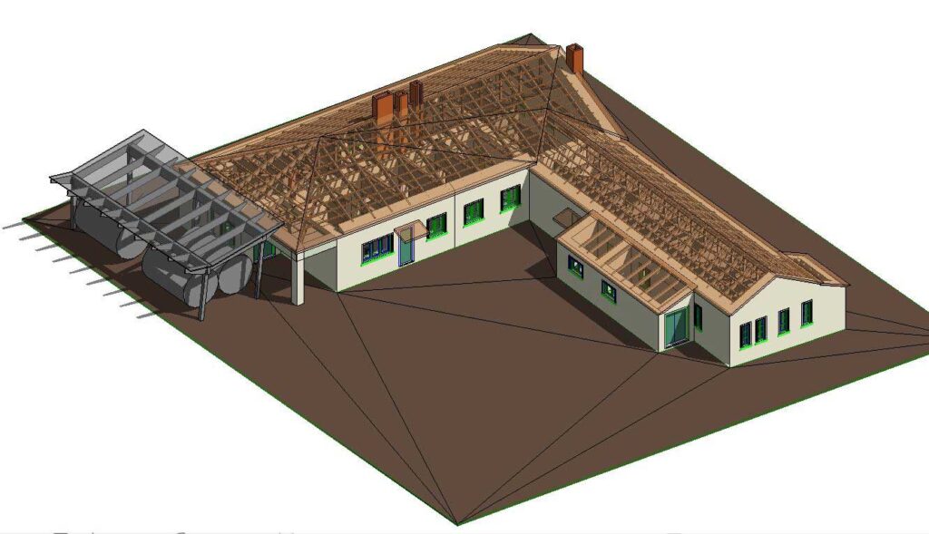 Στο διπλανό σχήμα φαίνεται το κτίριο σχεδιασμένο σε Revit και πιο κάτω ένα προοπτικό του κτιρίου και μια οψοτομή.