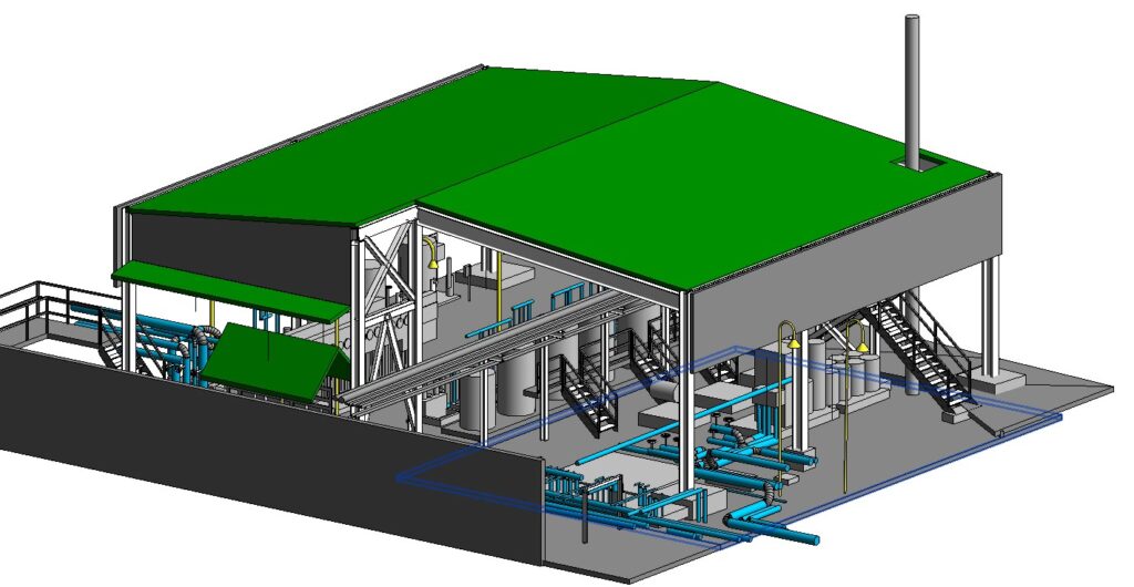 Το project έγινε έγινε από την εταιρία All3D της οποίας υπήρξαμε συνιδρυτές μαζί με την εταιρία Landmark. Πρόκειται για αποτύπωση κτιρίου με εγκαταστάσεις σε διυλιστήριο και ζητήθηκε σχεδιασμός 3D σε Revit. Εφαρμόσθηκε η μέθοδος αποτύπωσης με mobile laser scanner. Εδώ φαίνεται άποψη από το pointcloud του κτιρίου.